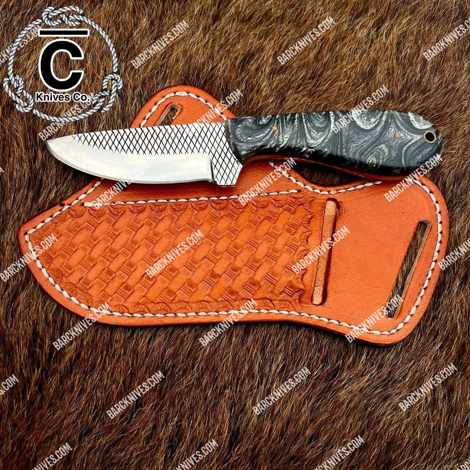 Comfortable handle grip and comes with cowhide leather sheath.