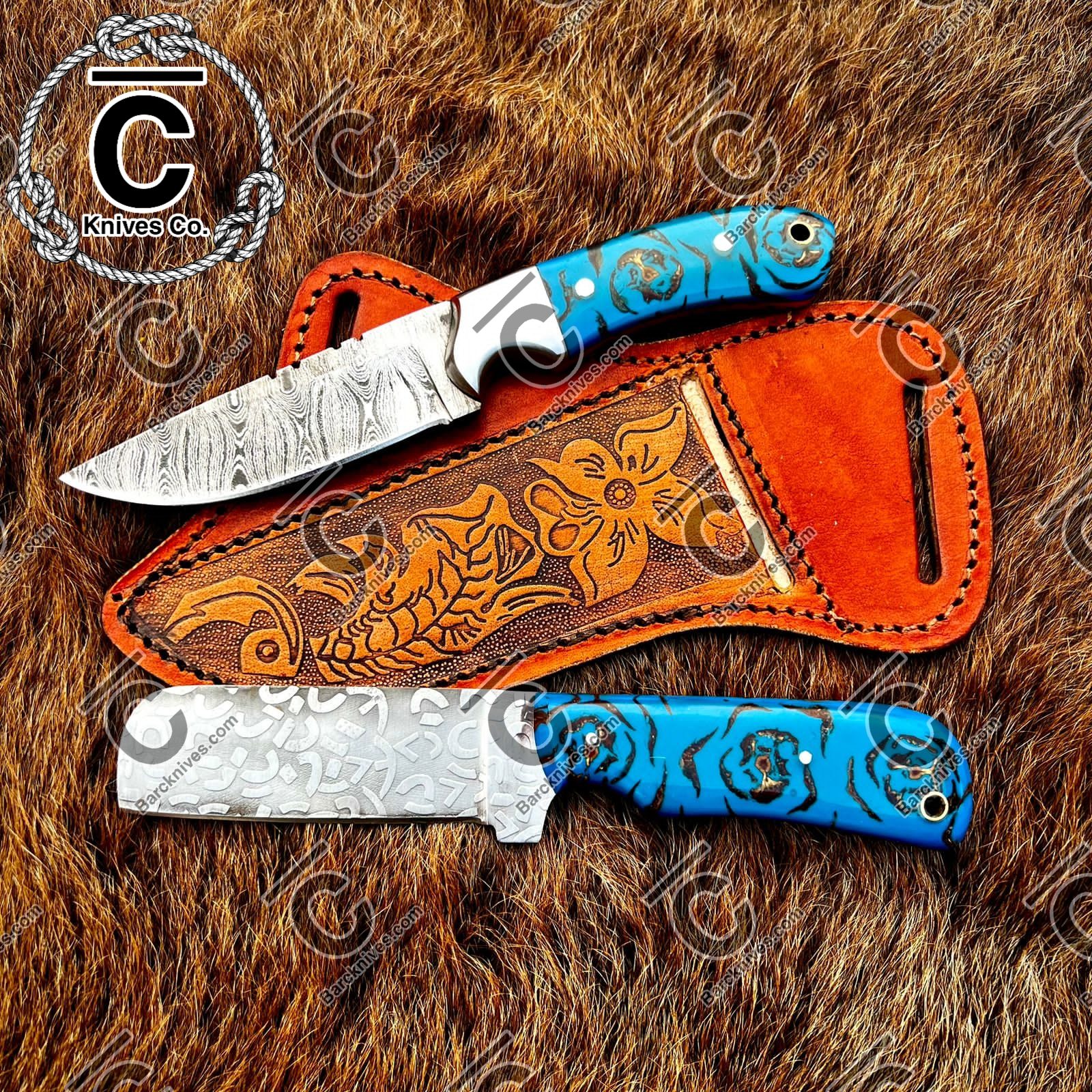 Both knives will come with leather sheaths.